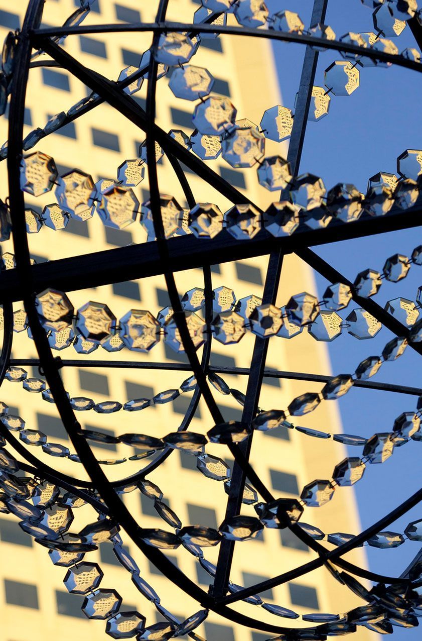 Chandelier represents the fragility of the city and its culture, its splendor and decay. This glistening object reflects life back to the viewer, defying comprehension with its exaggerated scale.