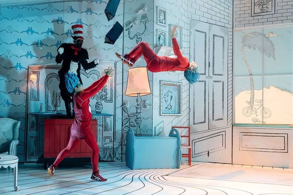 “Isla Shaw’s remarkable set (part illustration, part practical) is put to extensive use to support the storytelling and the physicality of the shenanigans. The costumes are delightful, capturing the spirit of Seuss’s original drawings.”