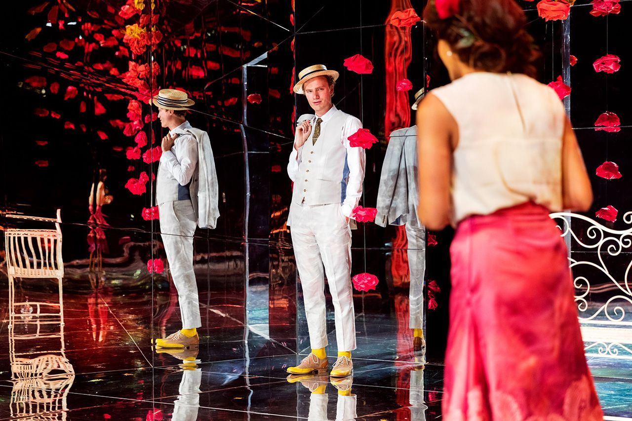 “The set by Isla Shaw is particularly brilliant, literally, with every surface of the one great room mirrored.”